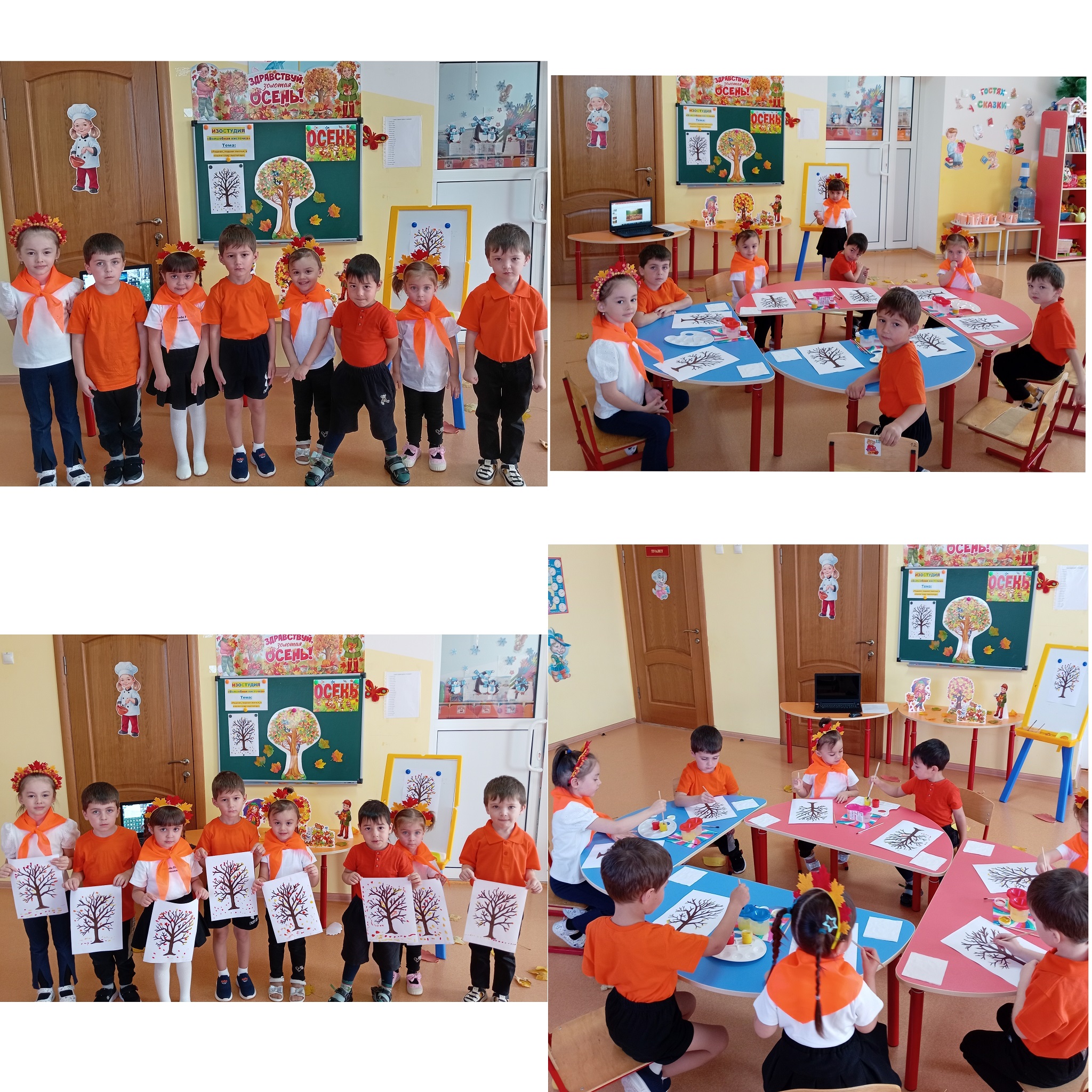 Основной задачей было научить детей новому способу рисования «Примакивание» и создание оранжевого цвета, при смешивании желтой и красной красок. Дети с удовольствием были вовлечены в процесс и выполнили все задачи.