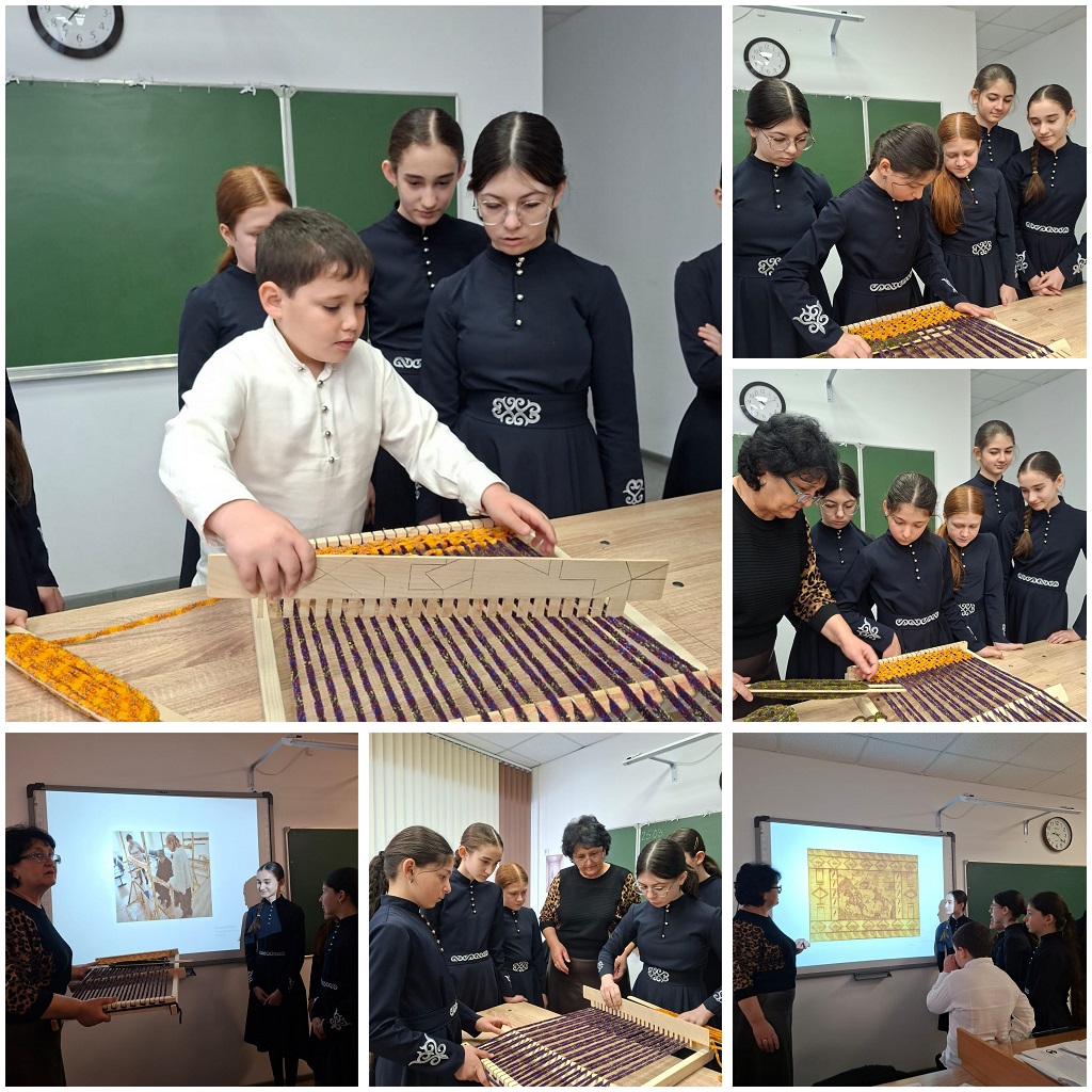 В рамках реализации проекта РИП «В каждой школе этнокласс» в МБОУ «СОШ а. Хабез им. Арашукова Р. Р.» по модулю учебного предмета труд 27.03.26 г. в 6 «В» этноклассе прошел урок по теме «Основы адыгского ковроткачества».