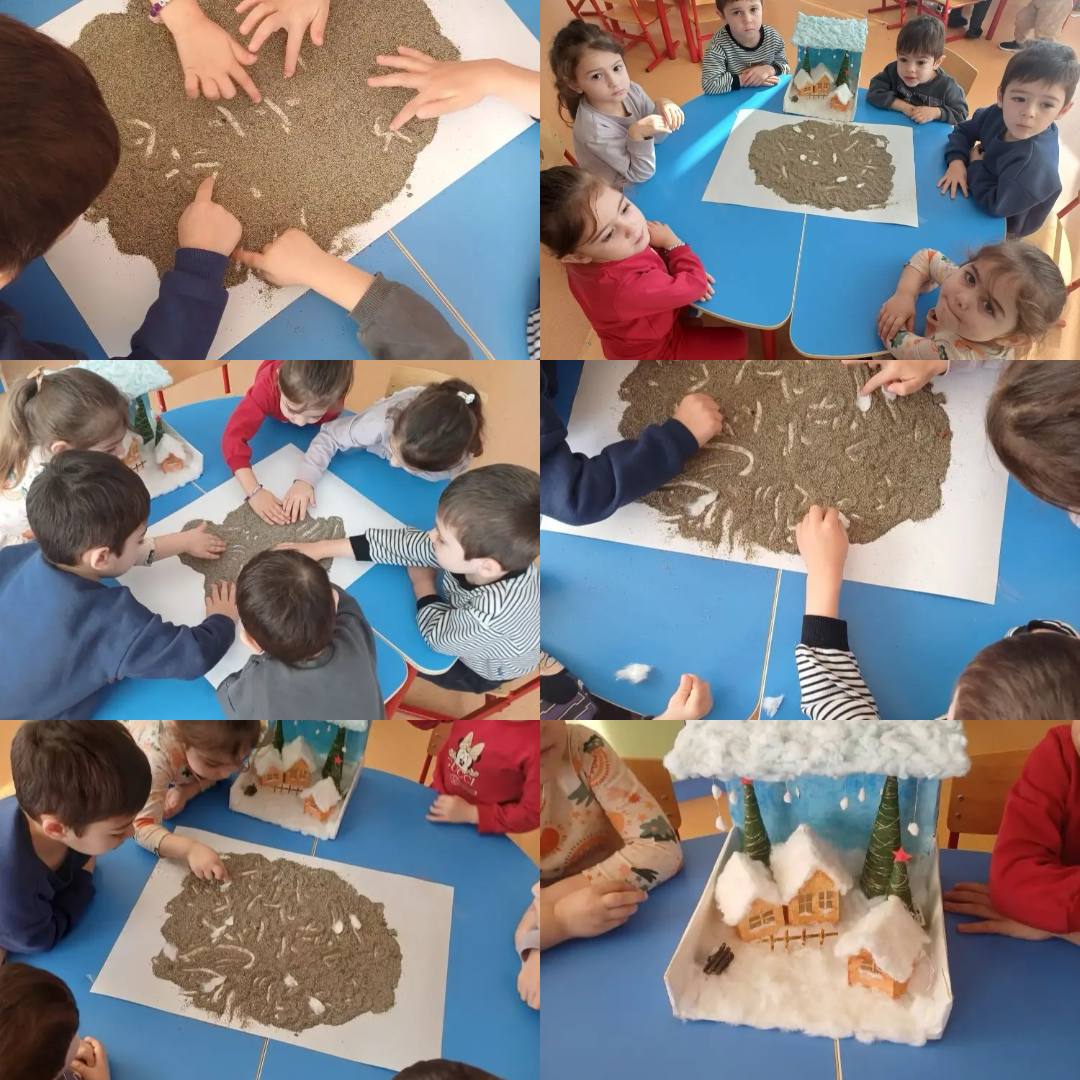 Таким образом, пескография «Волшебный песок», направленная на изображение падающего снега, способствует развитию творческого потенциала, мелкой моторики и тактильных навыков у детей, подарив им радость от непосредственного контакта с природным материалом.