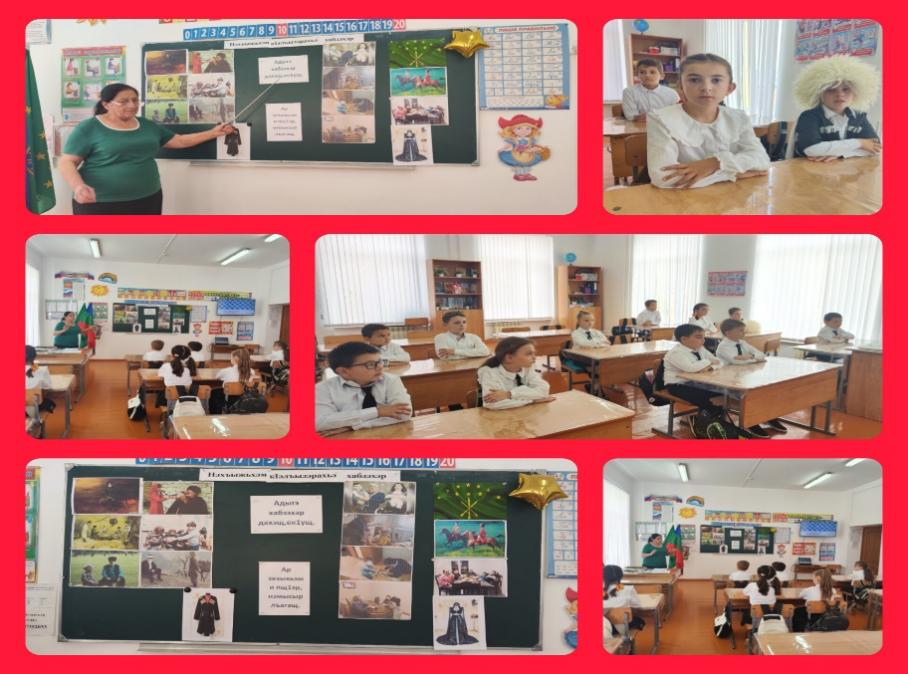 26 сентября 2025 года в МБОУ «СОШ а. Али-Бердуковский им. Джамбекова С. Г.» в 3 «А» классе проведено внеурочное занятие по теме: «Укlуэдыжынкъым, адыгэ фащэ, лъэпкъыр псэухукlэ, щы1эхукlэ гъащlэ!»