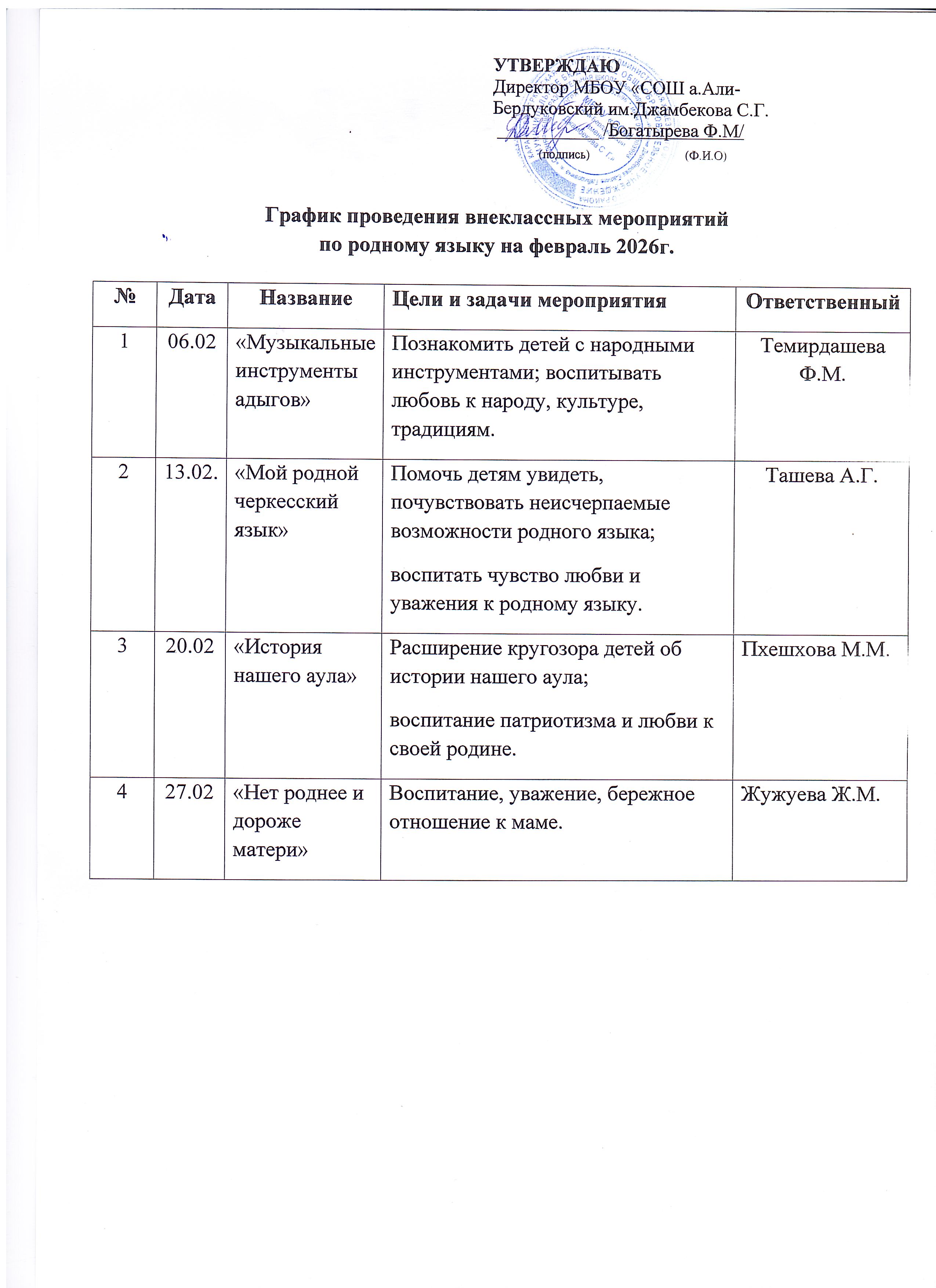 13.02.2026 г. во 2«А» классе МБОУ «СОШ а. Али-Бердуковский им. Джамбекова С.Г.» было проведено внеклассное занятие учителем начальных классов Ташевой А.Г. на тему «Мой родной черкесский язык».