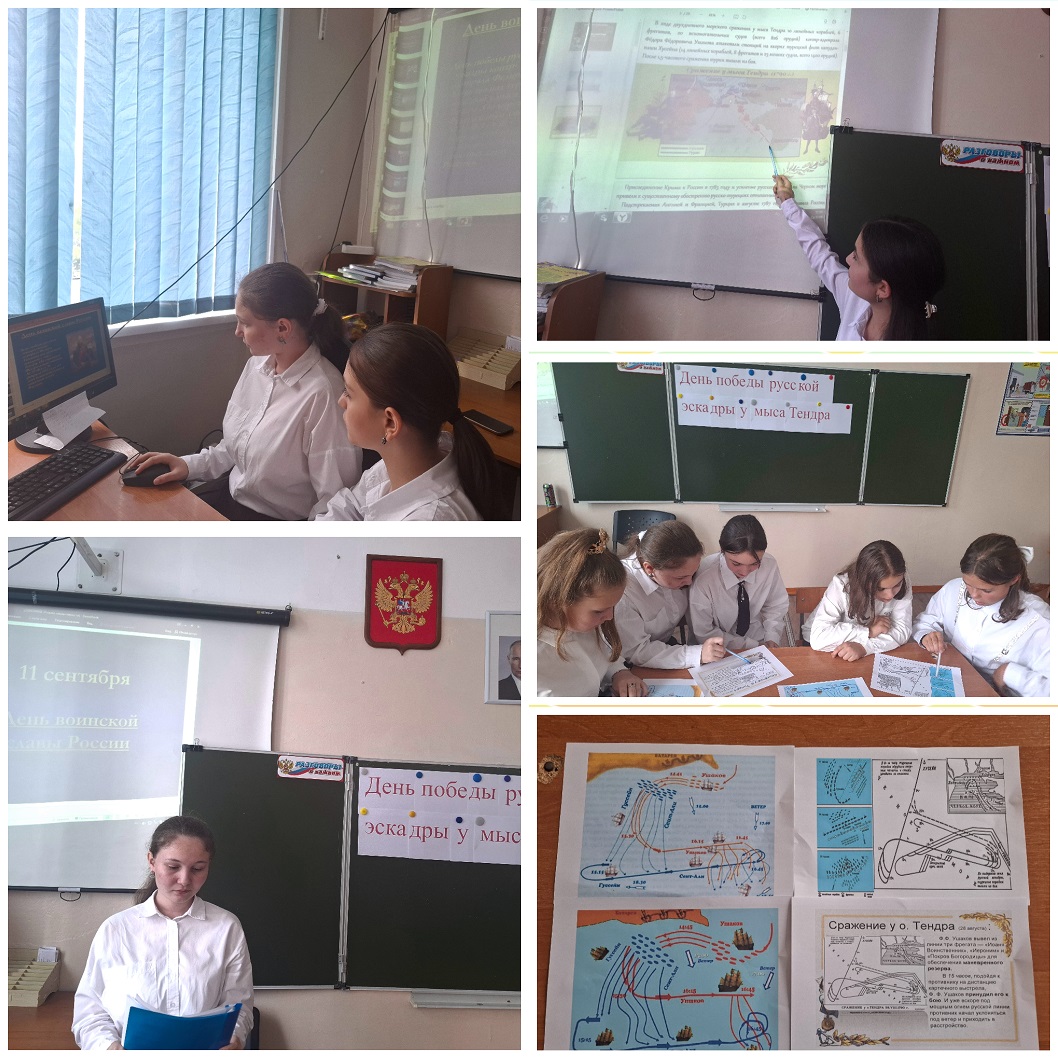 В честь знаменательного события, ставшего одним из Дней воинской славы России, 11 сентября в 7В классе проведён Урок Мужества "День победы русской эскадры у мыса Тендра".