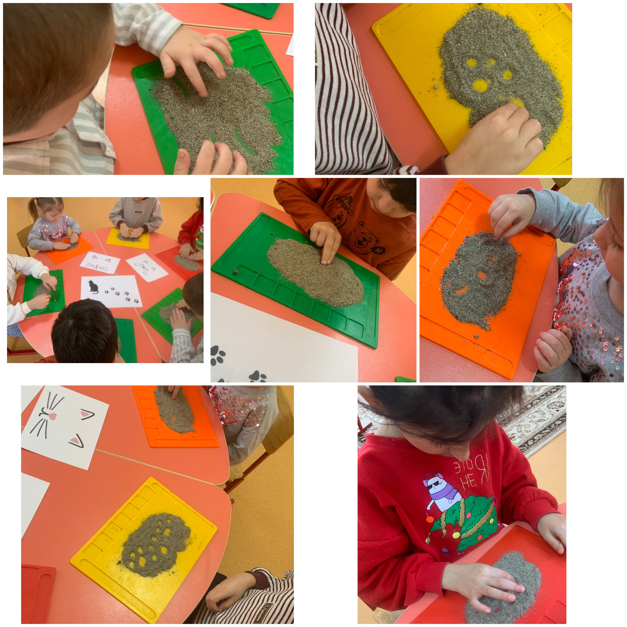 22.12.2025 г. в МБОО «Центр образования им В. Г. Ардзинба а. Кара-Паго» прошло занятие с детьми раннего возраста 4-5 лет в студии «Пескография» по теме: «Кошечка».