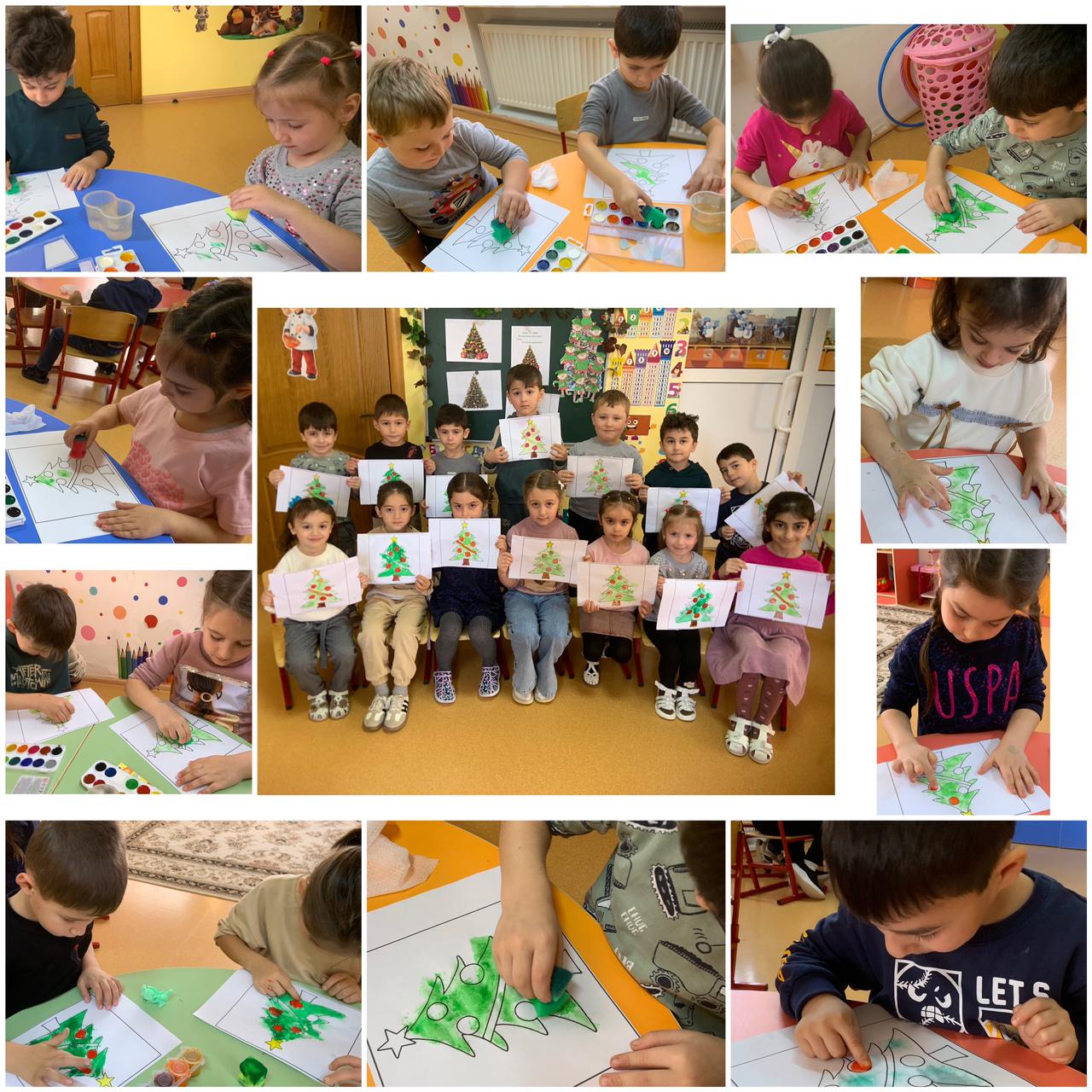 Ребята отправились в захватывающее путешествие в мир искусства. Для начала они создавали основу будущей ёлочки, осторожно водя по листу бумаг специальными поролоновыми губками. Затем настала очередь самой яркой части занятия: дети украсили свою работу яркими шарами, оставив очаровательные следы своих пальчиков. Каждое движение превращалось в маленькое чудо, рождая неповторимый облик каждой ёлочки.