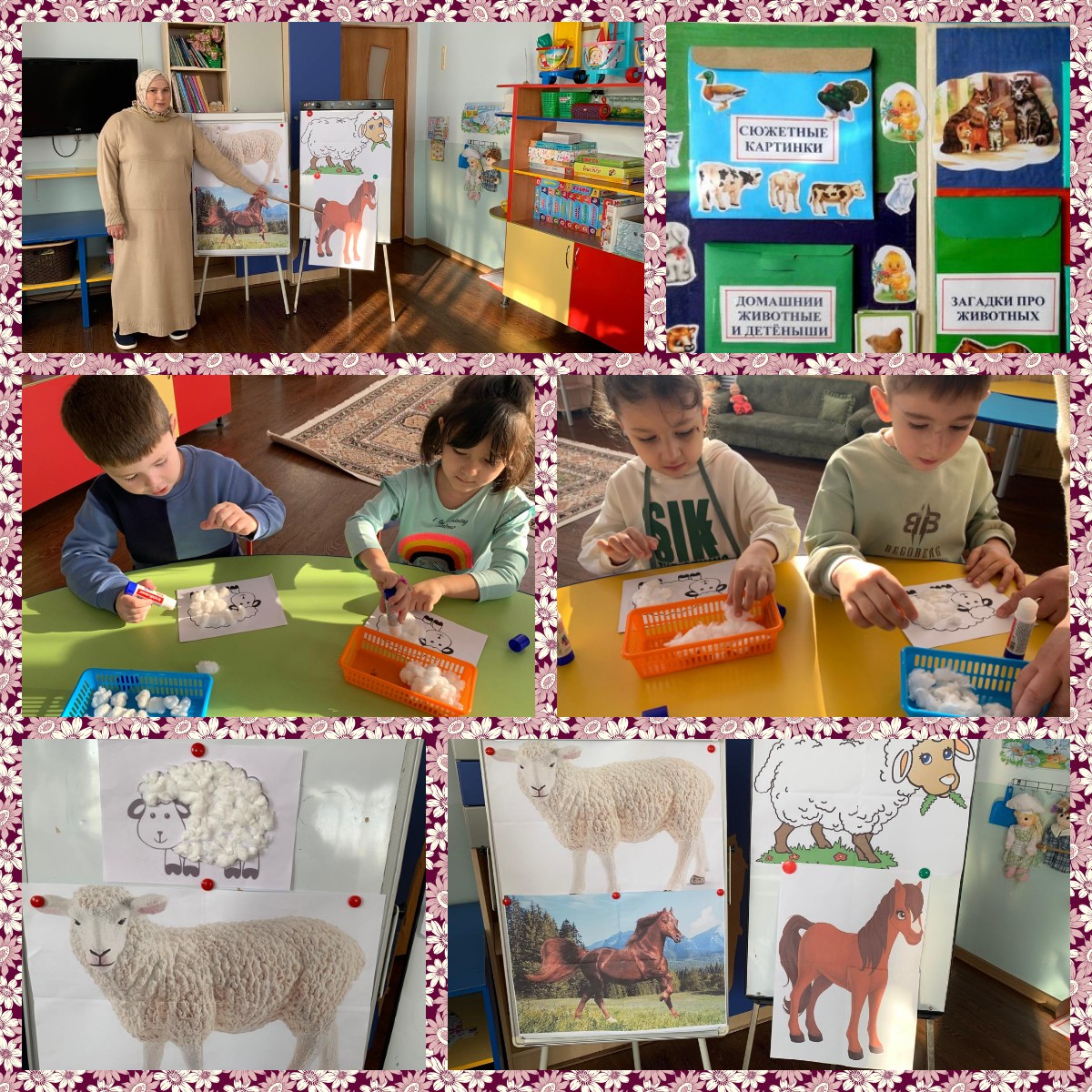Воспитатель ознакомила детей с разнообразием домашнего животного мира, их связью с человеком; формировала у них осознанное и правильное отношение к представителям домашних животных. Свои знания ребята закрепили через дидактическую игру «Кто самый нужный для человека», отгадывали загадки, обсуждали характеры и повадки овцы и лошади, в чем их различие, в каких условиях они содержатся, кто за ними и как ухаживает, какой корм употребляют и т.д.