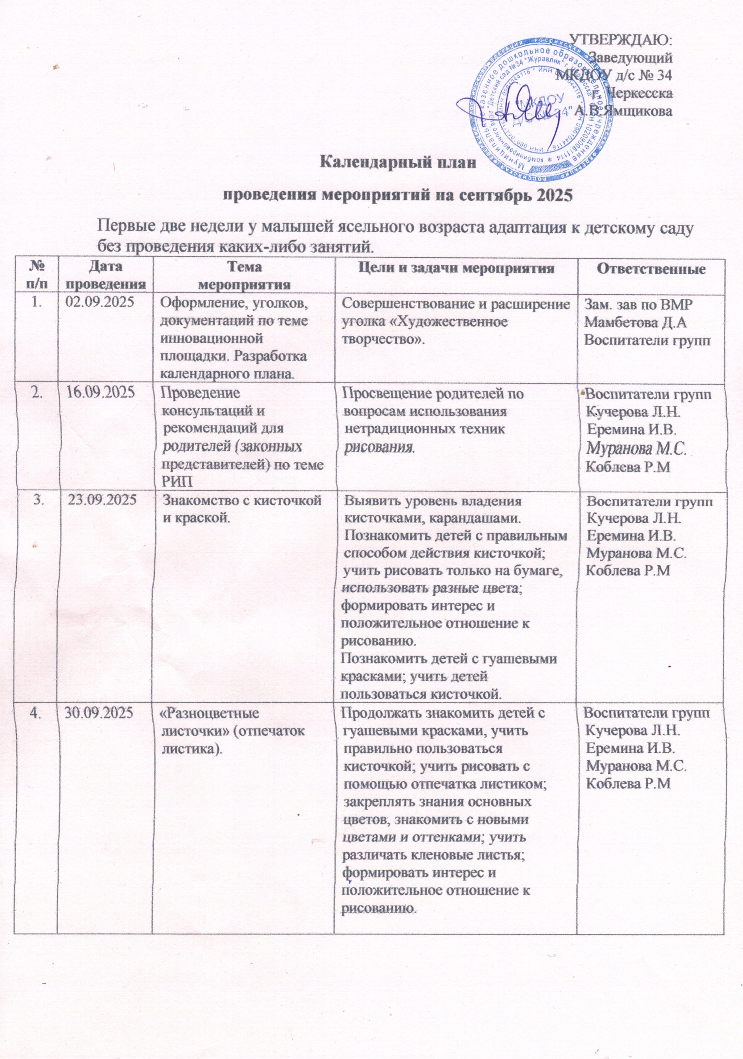 План на Сентябрь 2025 года