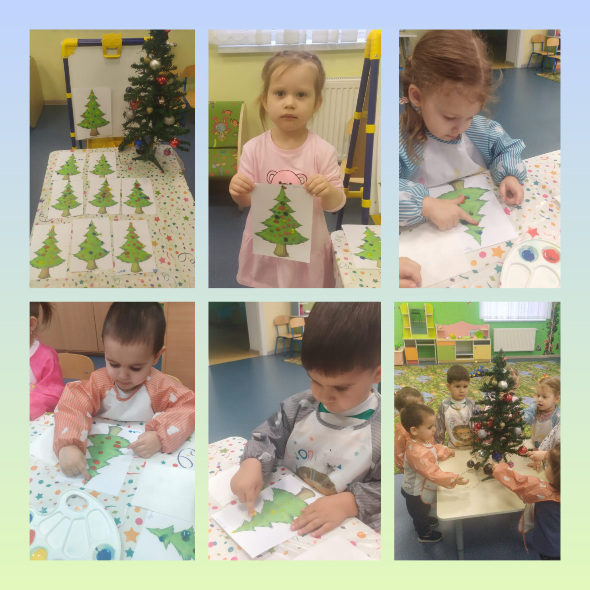 Воспитатель создал праздничную атмосферу, рассказав детям, что Дед Мороз спешил и не успел украсить свою ёлочку. Малыши с энтузиазмом взялись за дело: окунали пальчики в краску и «развешивали» яркие шарики на ёлках. В процессе педагог использовал разнообразные методы — словесный, наглядный, практический и игровой, — что помогло удержать внимание детей и мотивировать их на успешное выполнение задания.