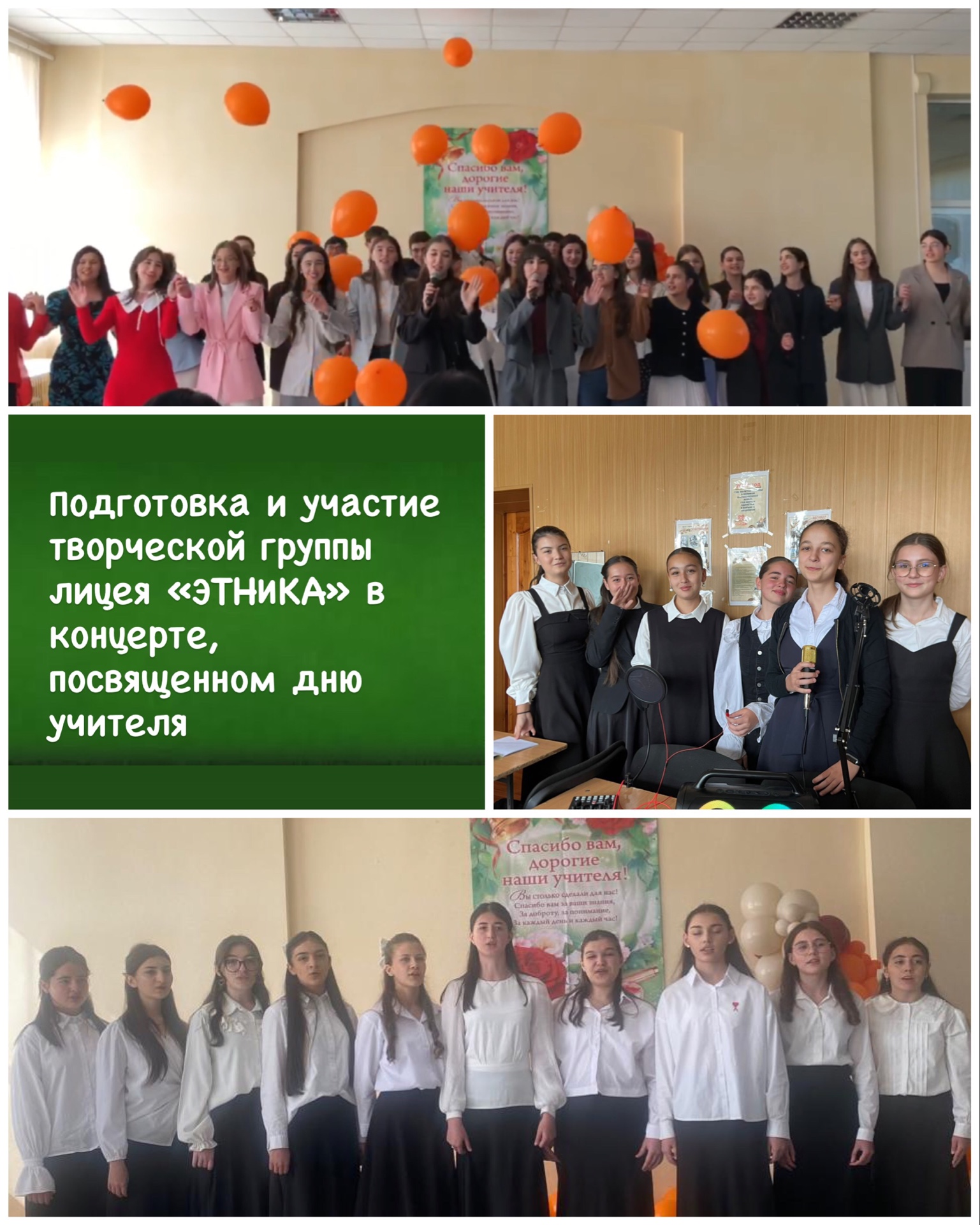 ПОДГОТОВКА И УЧАСТИЕ ТВОРЧЕСКОЙ ГРУППЫ ЛИЦЕЯ «ЭТНИКА» В КОНЦЕРТЕ, ПОСВЯЩЕННОМ ДНЮ УЧИТЕЛЯ
