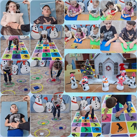 В течение недели были проведены занятия, направленные на развитие моторики и пространственного восприятия, а также творческое занятие по нейролепке «Снеговик», сочетающие двигательные, когнитивные и сенсорные компоненты. Каждое занятие включало в себя комплекс упражнений, направленных на синхронизацию движений, преодоление синкинезий (сопутствующих движений), отработку точности и развитие схемы тела.