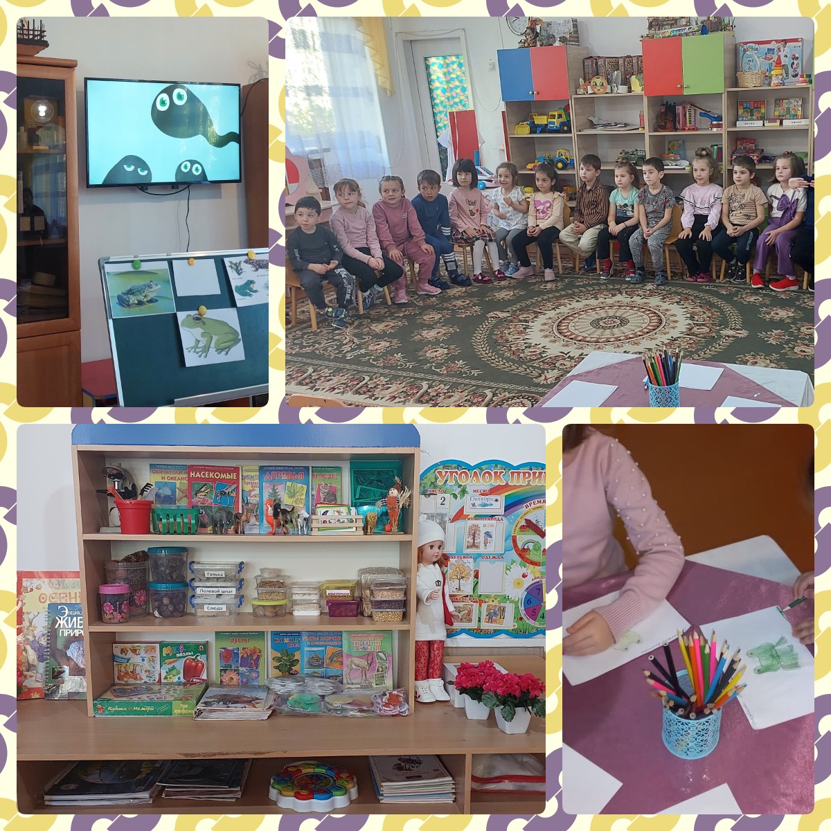 Дети закрепили знания о лягушке, как животном из отряда земноводных, а также узнали очень много нового и полезного о них: где обитают лягушки, сколько живут, какие звуки издают, как зимуют и т.д.