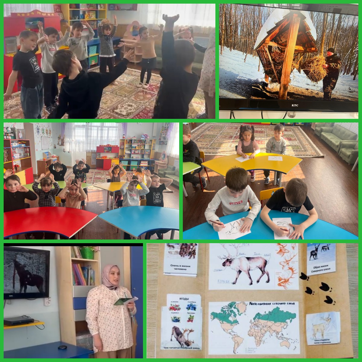Воспитатель предложила детям интересную тему – тему защиты леса, и тему изучения профессии лесничего (лесника). Лесничий – это человек, который занимается восстановлением и приумножением лесного богатства, для этого производит посев семян, посадку саженцев и деревьев. Лесники – это люди, хорошо знающие всех обитателей леса и старающиеся им в трудное время. Здесь воспитатель использовала метод проблемного обучения (МПО). Она поставила перед детьми задачу: какую конкретно помощь может оказать лесник, именно в это зимнее холодное и голодное для диких животных. Ребята методом рассуждений, предположений, и выдвижения теорий, представили воспитателю свое видение профессии лесника. Затем Мадина Рамазановна предложила рассмотреть профессию лесника на примере помощи самого большого животного Средней полосы России. Горбоносый, длинноногий