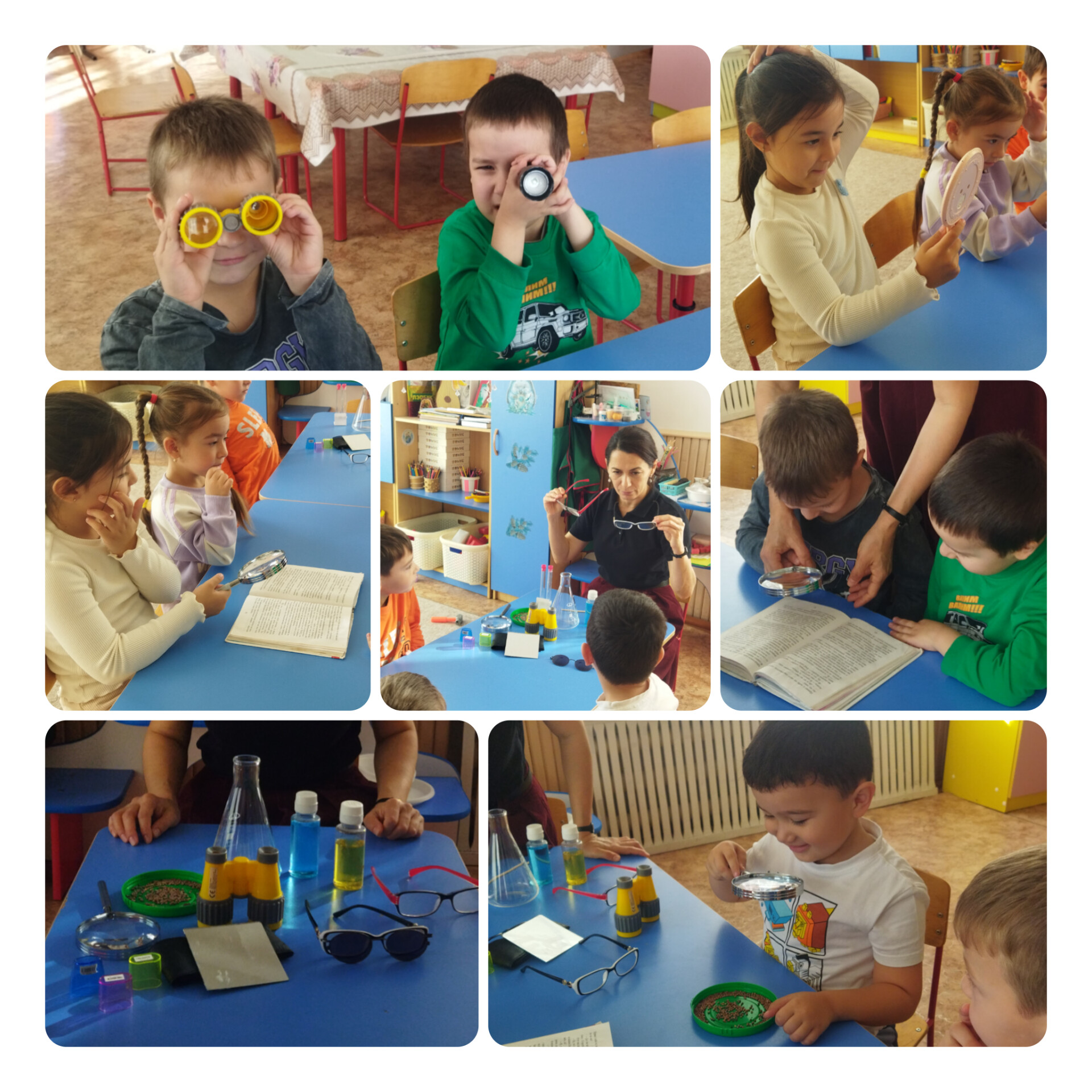 06. 11. 2025 г. в детском саду продолжились занятия по внедрению исследовательской и экспериментальной деятельности в педагогический процесс. В рамках реализации программы прошло занятие «Волшебные стёклышки». На занятии дети узнали что такое стекло, познакомились с приборами-помощниками – лупой и микроскопом, для чего они нужны человеку.