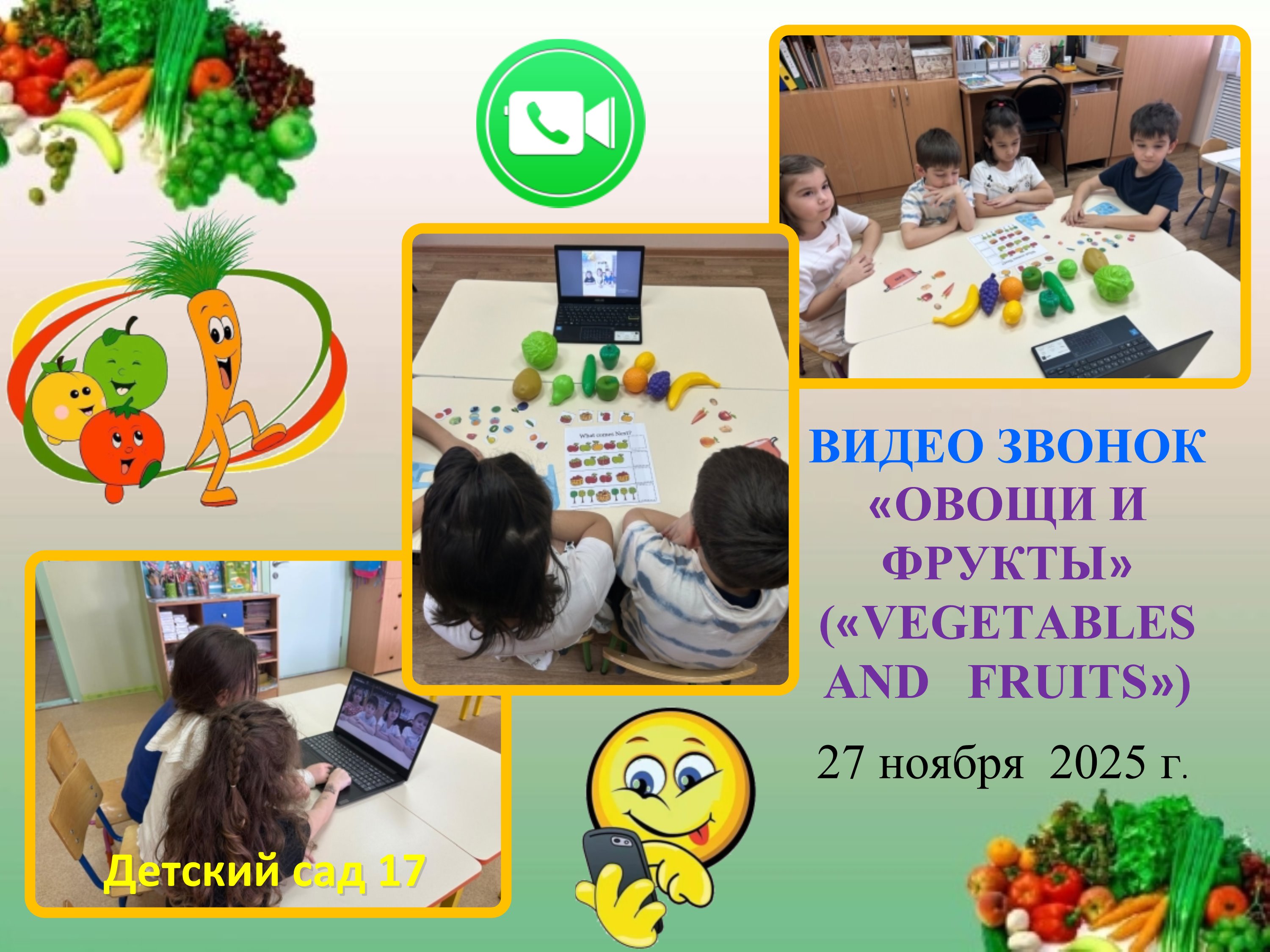 ВИДЕО ЗВОНОК «ОВОЩИ И ФРУКТЫ» («VEGETABLES AND FRUITS») 27 ноября провели видео звонок «Овощи и Фрукты» (Четвертое занятие телекоммуникационного проекта «Овощи и фрукты») Продолжить чтение