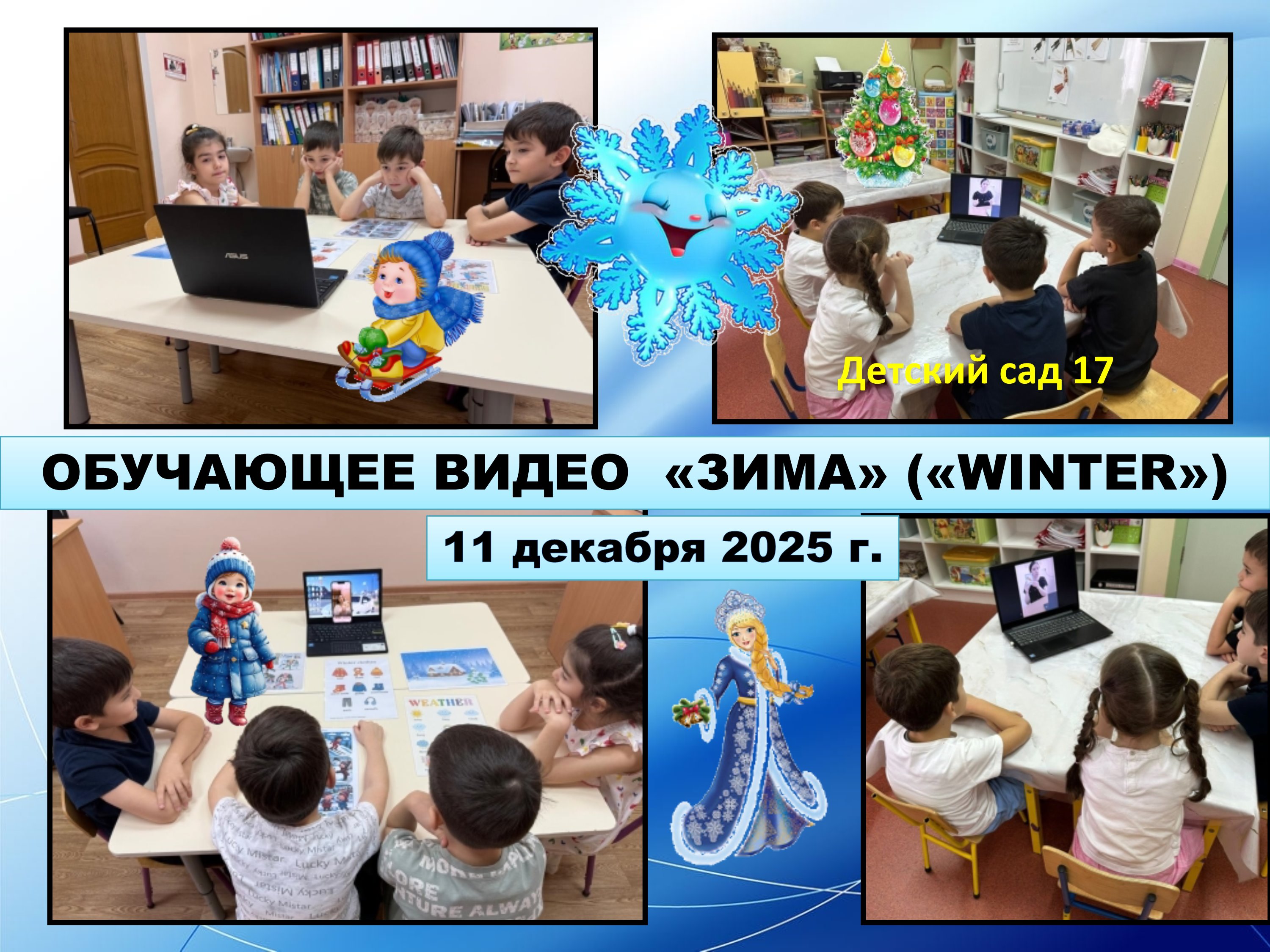 ОБУЧАЮЩЕЕ ВИДЕО «ЗИМА» («WINTER») 11 декабря в нашем детском саду и детском саду № 17 (сетевой партнер) прошел просмотр обучающего видео по теме «Зима», (второе занятие телекоммуникационного проекта «Зима. Зимние развлечения»). Продолжить чтение