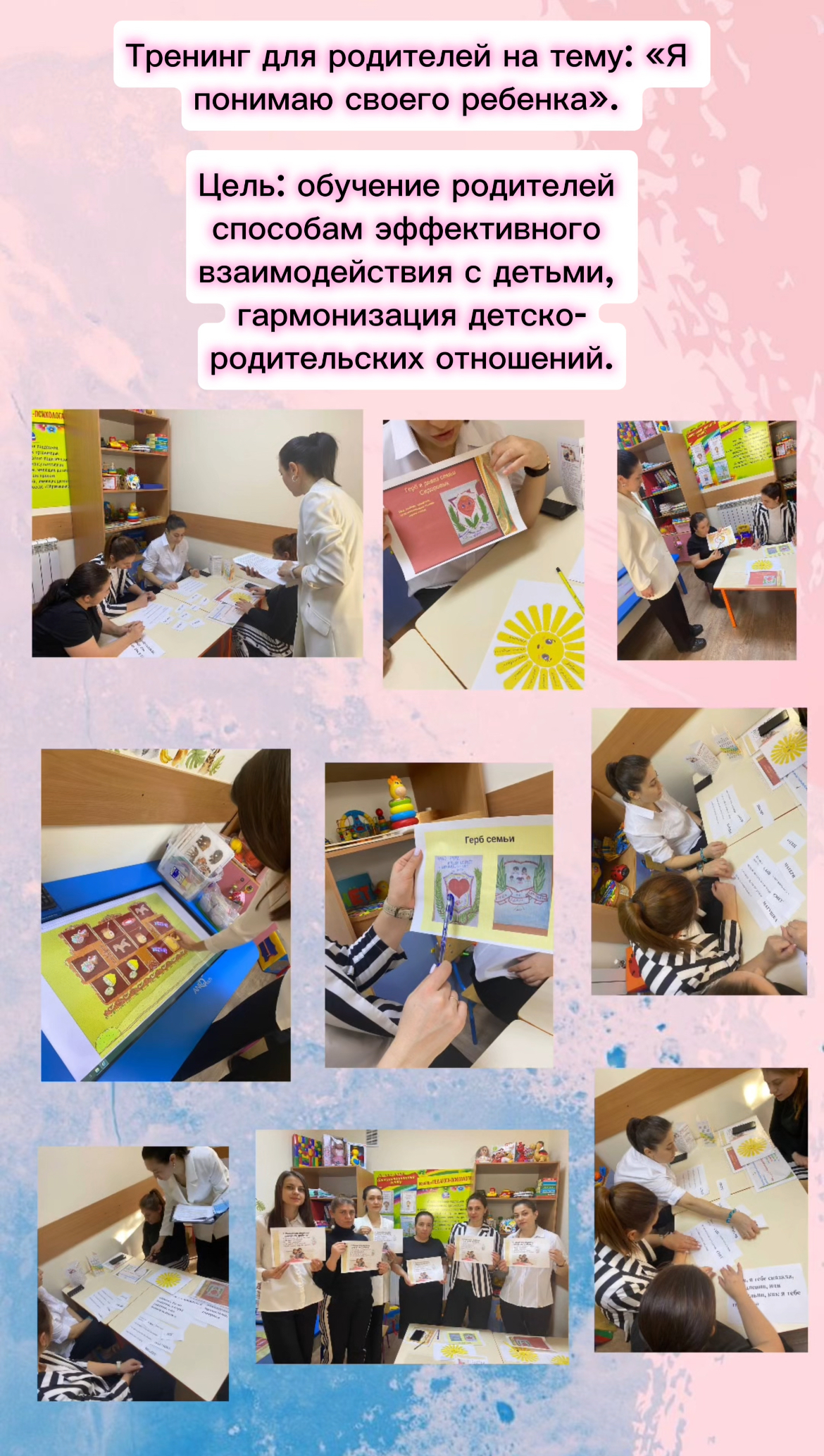06.12 2024 г. в МБДОО «ЦДР Детский сад №17 «Мамонтёнок» с родителями провели тренинг по гармонизации детско-родительских отношений «Я понимаю своего ребенка».
