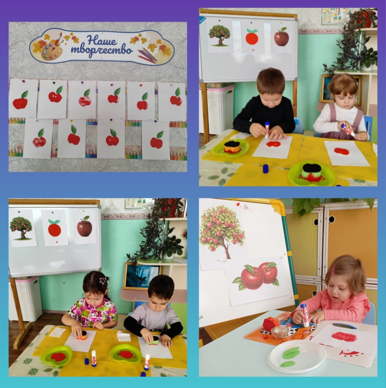 06.11.2025 года в группах раннего возраста прошло занятие на тему «Яблочки» в технике рисования штампами + аппликация.