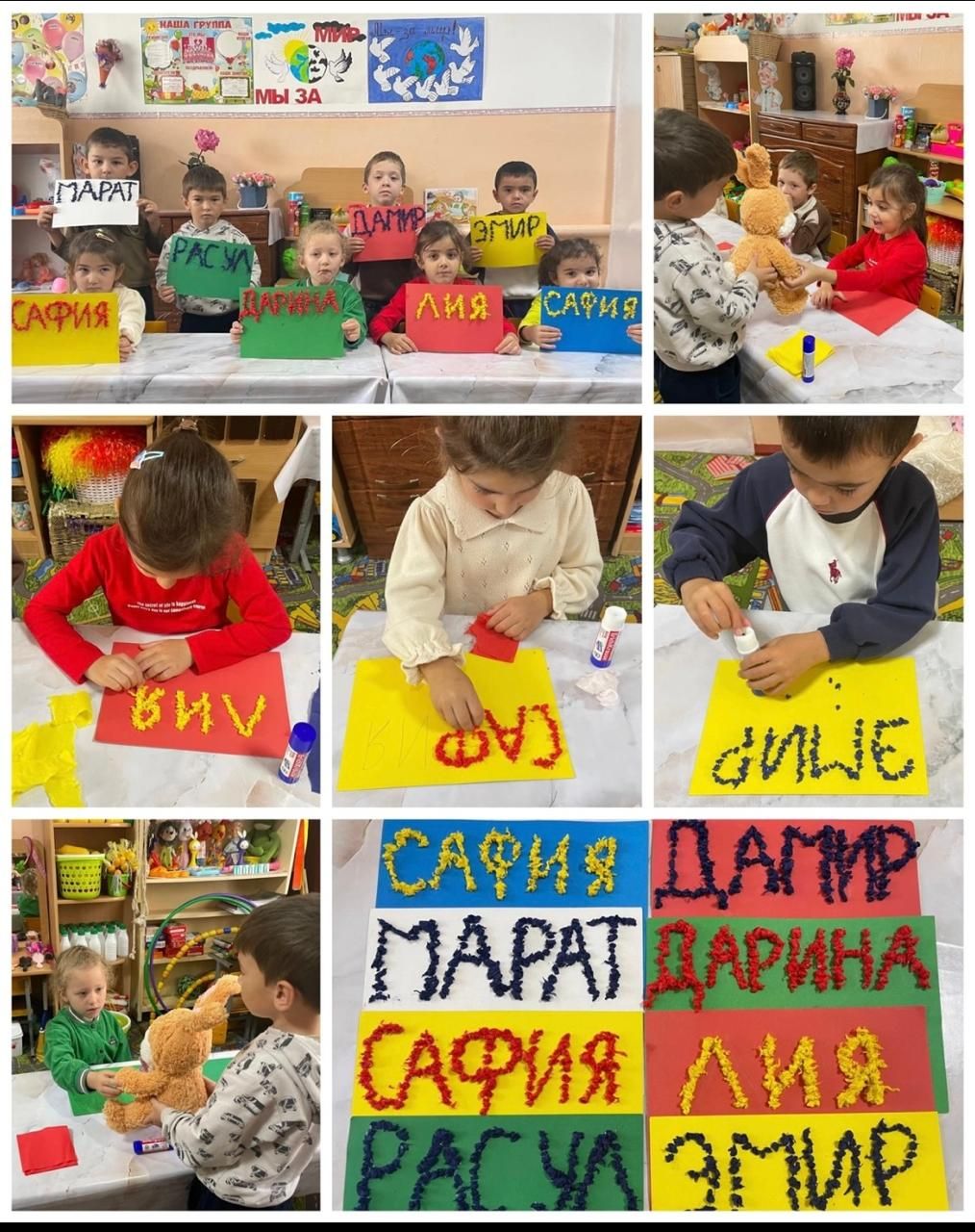 В каждом моменте занятия ставили задачу направлять детей на поиск решений проблемы, на приобретение нового опыта, использовали методы, активизирующие самостоятельность и поддерживающие положительный эмоциональный настрой. Игровой метод сюрпризный момент, дидактические игры, пальчиковая игра. Словесный метод- беседа, вопросы, указания, поощрения, художественное слово (загадки,-стихи, ).Работа по картине. Практический: Игра –имитация «Что означает мое имя», аппликация из салфеток своего имени», игра «Выговариваем красиво имя», игра «Радость или огорчение», пальчиковая игра «Семья. В середине ООД с целью снятия статического напряжения, повышения умственной работоспособности, снижения утомления была проведена физкульминутка «Пропоем свое имя» . Во время ООД старалась общаться с детьми на одном уровне, «глаза в глаза». Отношения между воспитателем и детьми выстраивались по принципу в позиции «рядом».